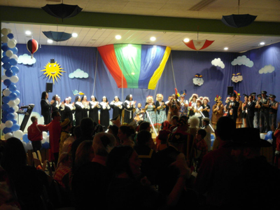Es gibt spezielle Akteure, die gehören so fest zum Wolkener Karneval, wie der Schlachtruf Helau: Dies trifft zweifellos auf die Tanzgruppe „Das tanzende Dutzend“ zu, die mit einem Aufziehpuppen-Tanz begannen und zum Ende hin immer flotter wurden. Die grandiose Show wurde einstudiert von der Trainerin Jutta Schau. Das Tanzende Dutzend bereichert schon seit vielen Jahren das Wolkener Veranstaltungsleben und setzt sich aus folgenden Akteurinnen zusammen: Jutta Schau, Roswitha Würsch, Maria Hain, Monika Verworner, Gaby Spierling, Ingrid Müller, Annelie Zahn, Anke Girolstein, Michaela Loth, Monika Kröter, Tina Kohnz, Rosi Bartsch und Birgit Röhrig. Dass die Wolkener Karnevalssitzung eine flotte Tanzveranstaltung ist, zeigte sich auch in den folgenden Programmpunkten, die durch den ältesten Möhnenverein Deutschlands aus Mülheim-Kärlich und die Lonniger Showtanzgruppe Flintstones dargeboten wurden. Die meisten Jecken trauten ihren Augen nicht, als im nächsten Augenblick 4 gestandene Männer offensichtlich in den Jungbrunnen gefallen waren. Nur mit Windeln bekleidet präsentierten sich Jürgen Barth, Norbert Bartsch, Jürgen Schau und die Dream Boy´z unter dem Namen Bêbês dem begeisterten Publikum. Ein unvergesslicher Moment in der Wolkener Halle.